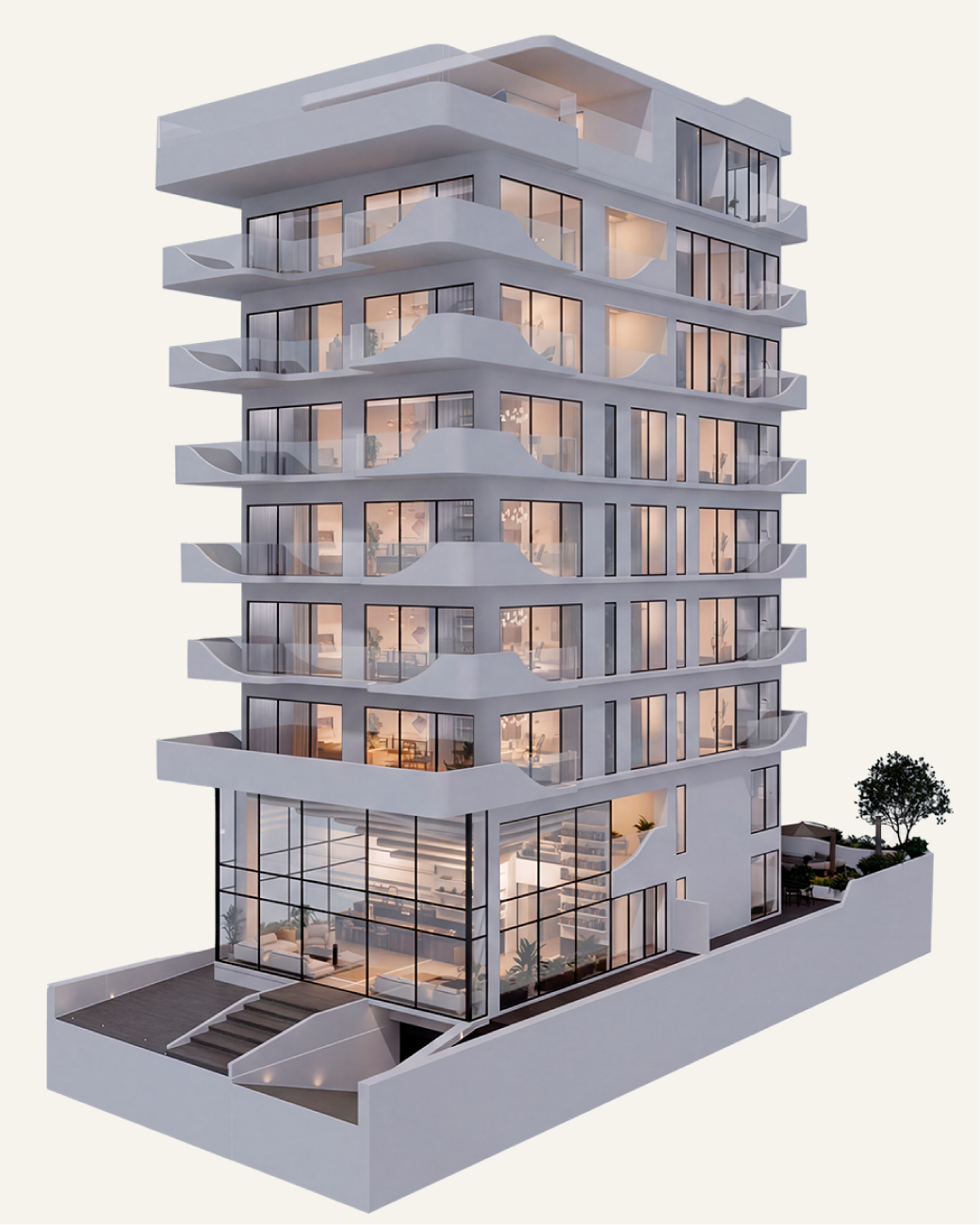 Solo 18 residencias boutique, distribuidas en siete niveles: 2 Lofts (1 recámara + mezzanine + terraza privada) 4 Estudios (1 recámara + balcón amplio) 8 Departamentos de 2 recámaras (con terraza) 4 Departamentos de 3 recámaras (con terrazas más amplias y vistas abiertas)